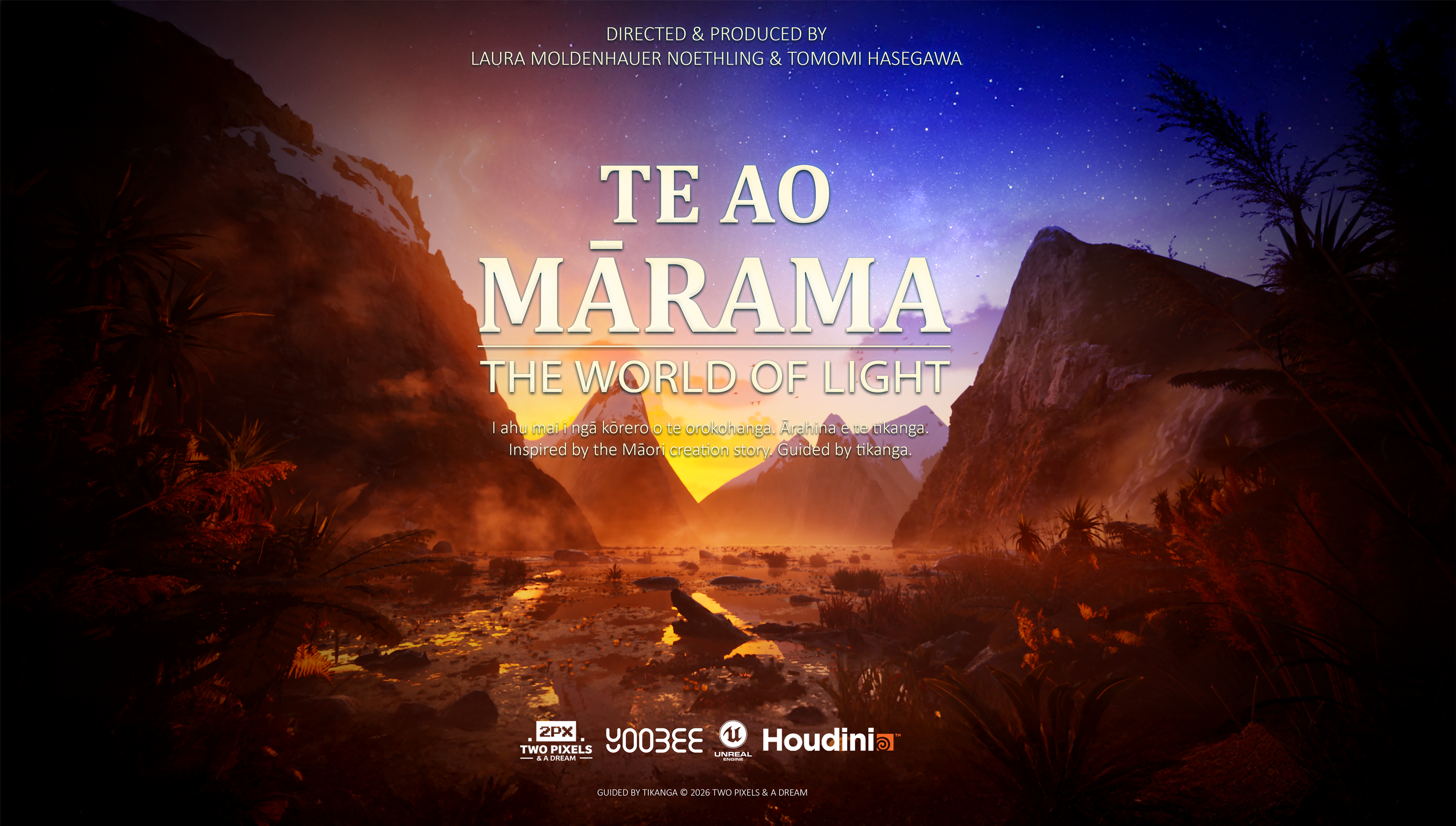 Te Ao Mārama is produced and directed by Laura Moldenhauer-Noethling and Tomomi (Goom) Hasegawa, together known as Two Pixels and a Dream.